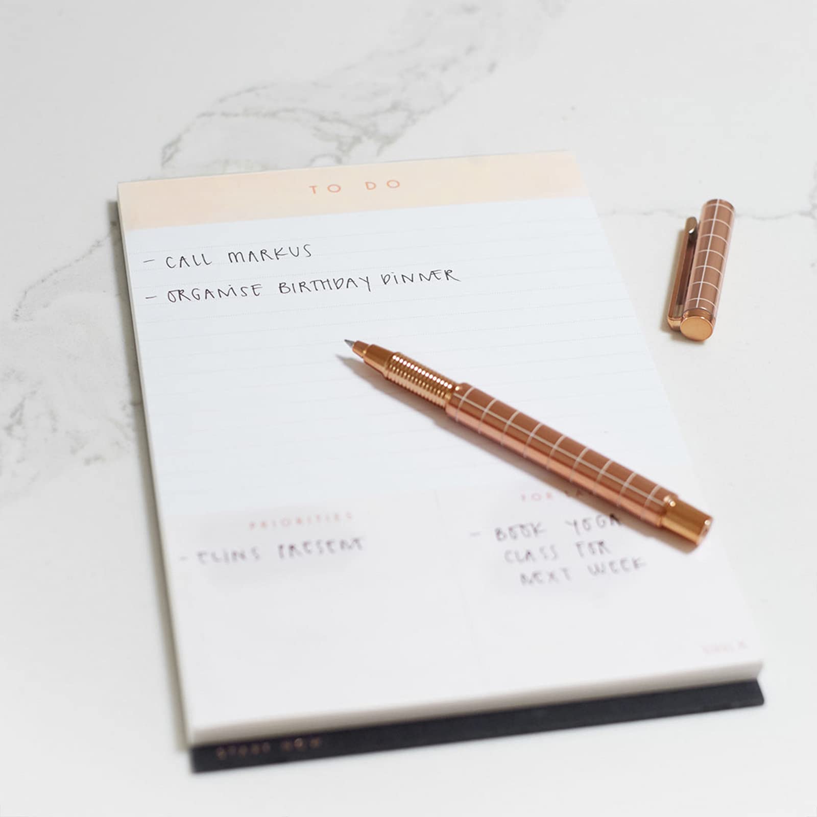 A5 To Do List Pad in Blush. 60 Tear Off Sheets. Lined To Do Section. Open Space for Priorities and For Later Notes. Individual Sheet Size- 8.58″ x 5.83″ by kikki.K.