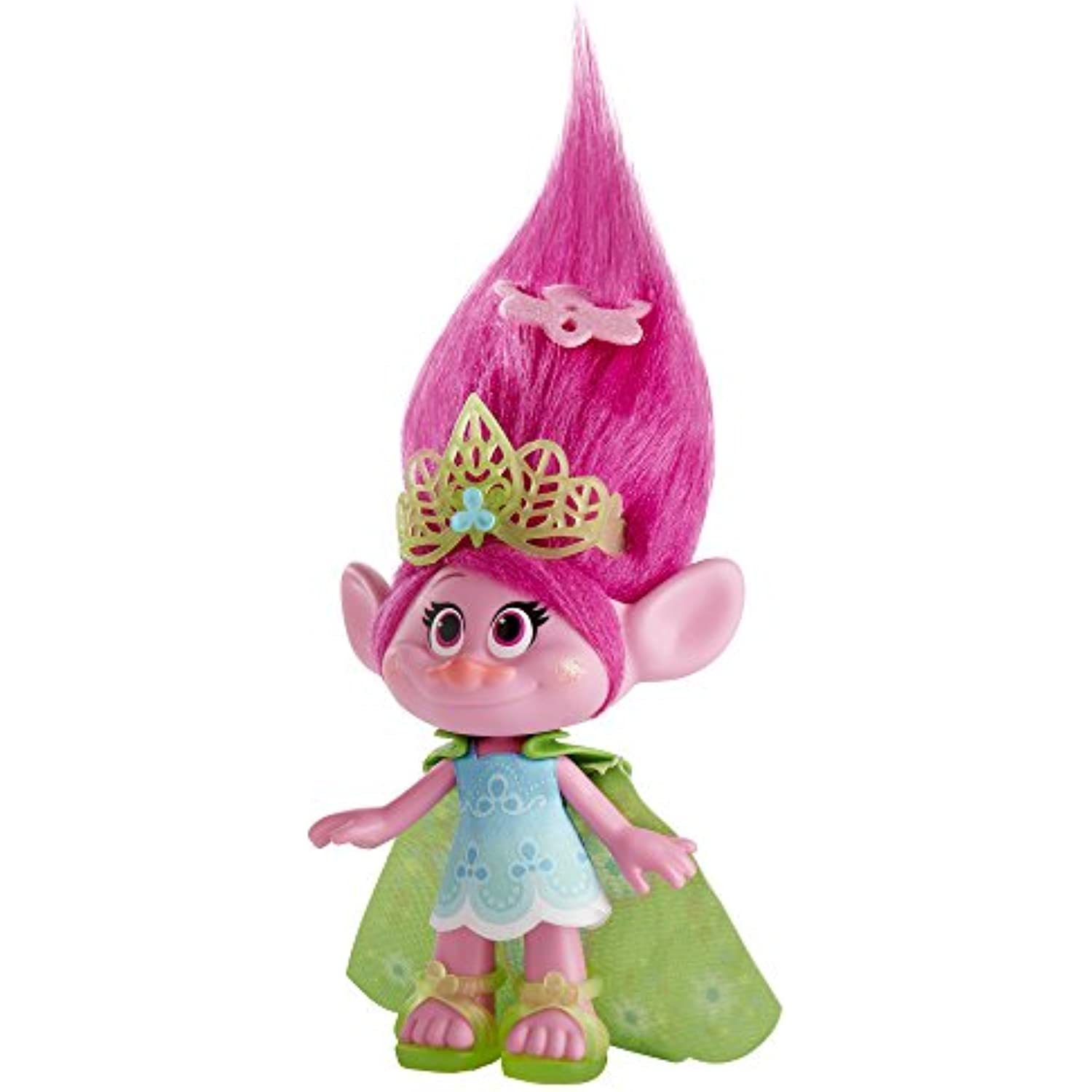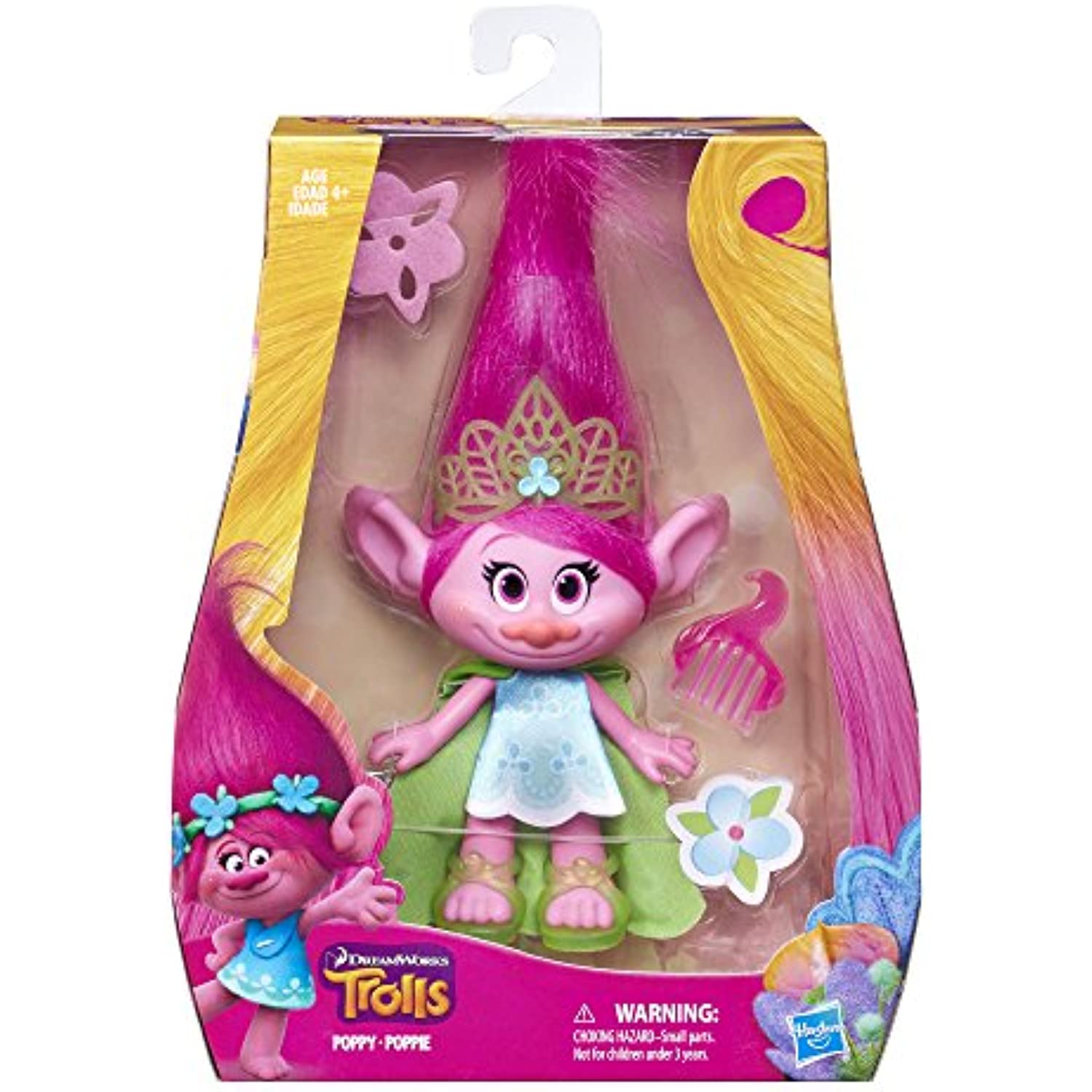 Crank up the fun with this DreamWorks Trolls Poppy figure! She’s the heroic leader, lifting the spirits of everyone around her with positivity and the belief that, with a song in your heart, you can do anything! For oodles of hairstyling fun, this colorful figure has wild hair and comes with a comb and Fuzzy Flair material for fun hairstyles. Imagine magical scenes from the movie with fabulous accessories like her tiara and cape! DreamWorks Trolls Copyright 2016 DreamWorks Animation LLC. All rights reserved. Hasbro and all related terms are trademarks of Hasbro.