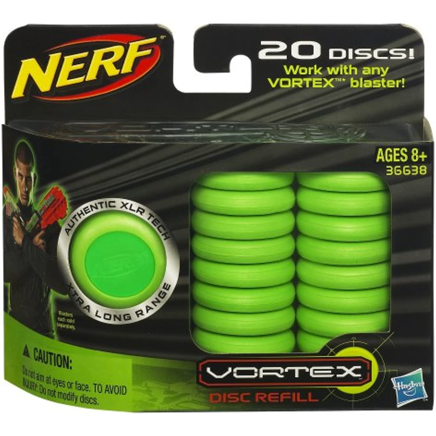 Product Description The race goes to the swift, and the battle is won by the one who doesn’t run out of ammo! Get some major tactical advantage with an extra ammo store. The Vortex Disc Refill has 20 discs that work with any Vortex blaster! They’ll sail an extra-long distance, because Vortex blasters (sold separately) have cutting-edge XLR technology for long-range, high-power awesomeness. Fight longer and fire longer with the Vortex Disc refill! From the Manufacturer The race goes to the swift, and the battle is won by the one who doesn’t run out of ammo! Get some major tactical advantage with an extra ammo store. The Vortex Disc Refill has 20 discs that work with any Vortex blaster! They’ll sail an extra-long distance, because Vortex blasters (sold separately) have cutting-edge XLR technology for long-range, high-power awesomeness. Fight longer and fire longer with the Vortex Disc refill!