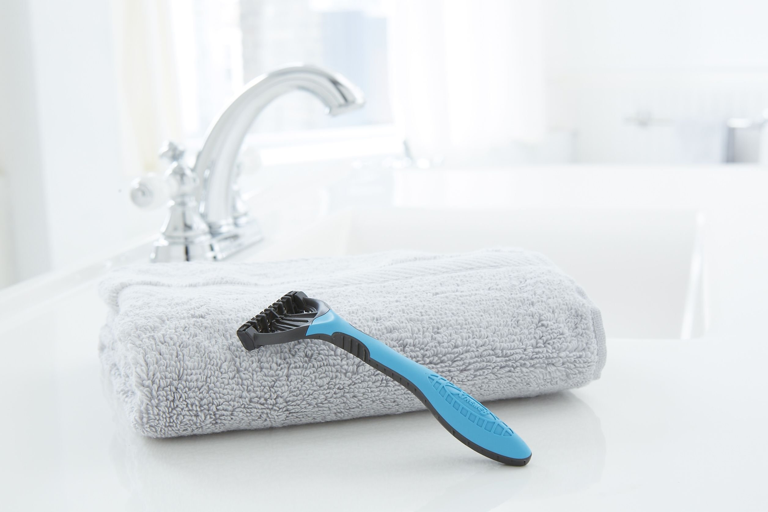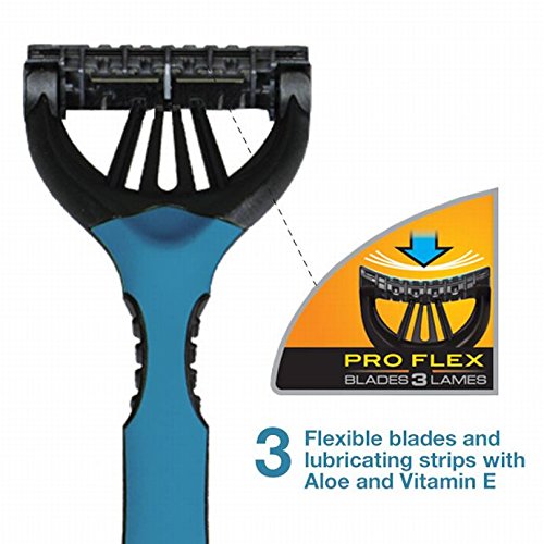 The only triple flexible blade disposable razor with pre & post shave lubricants for a close and comfortable shave
