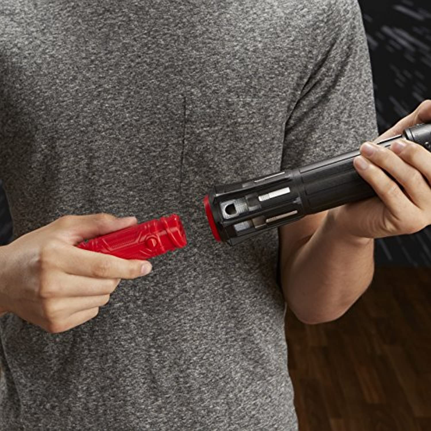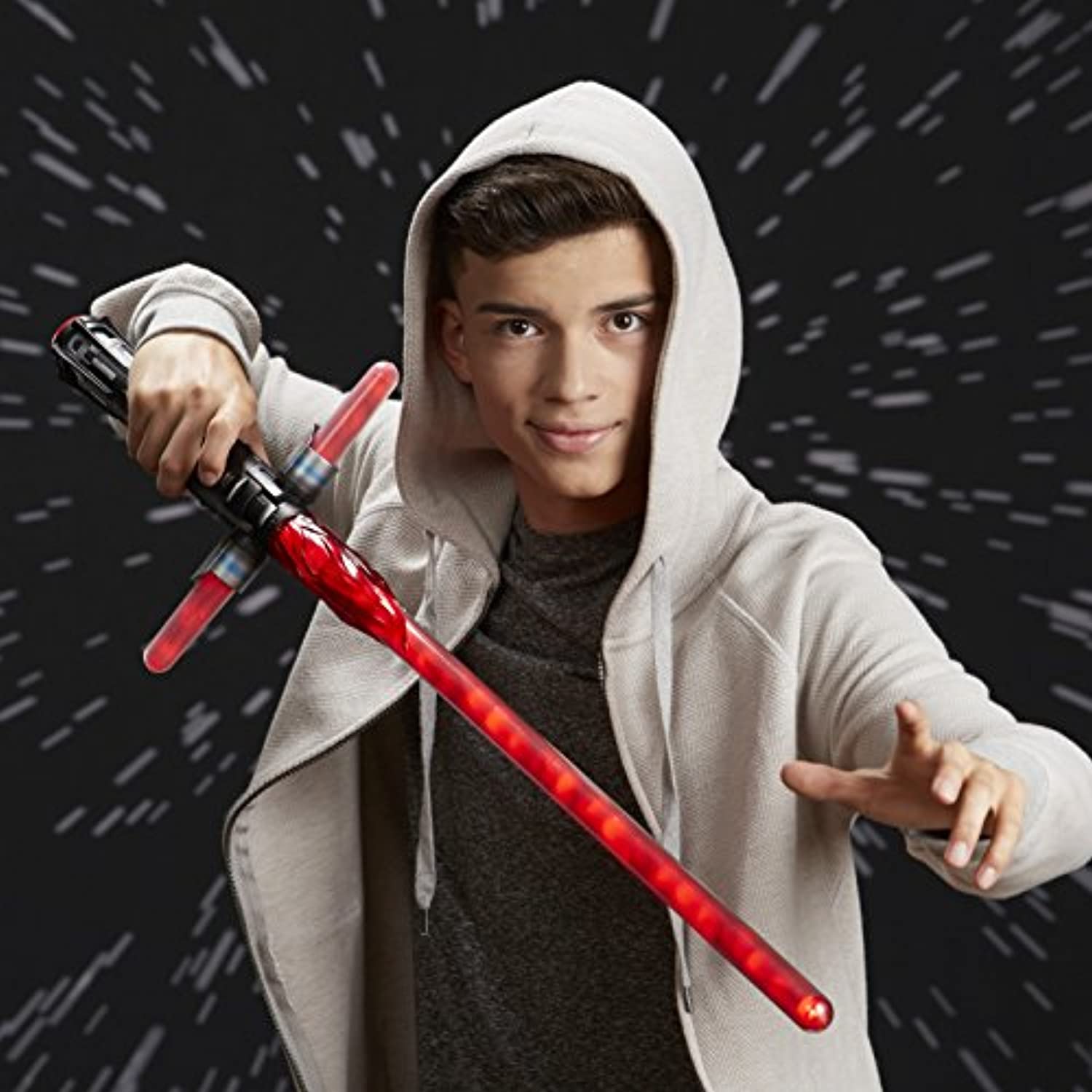 - Pulsating light effect that mimics Kylo Ren’s fiery lightsaber from the Star Wars movies